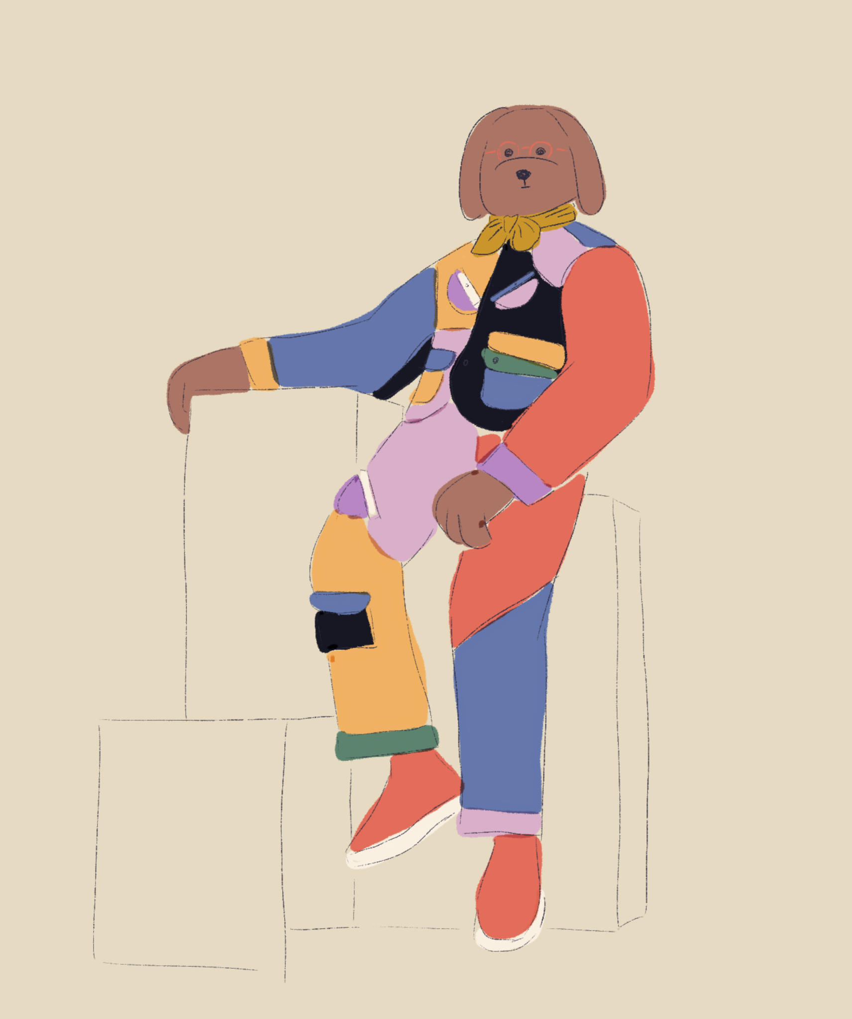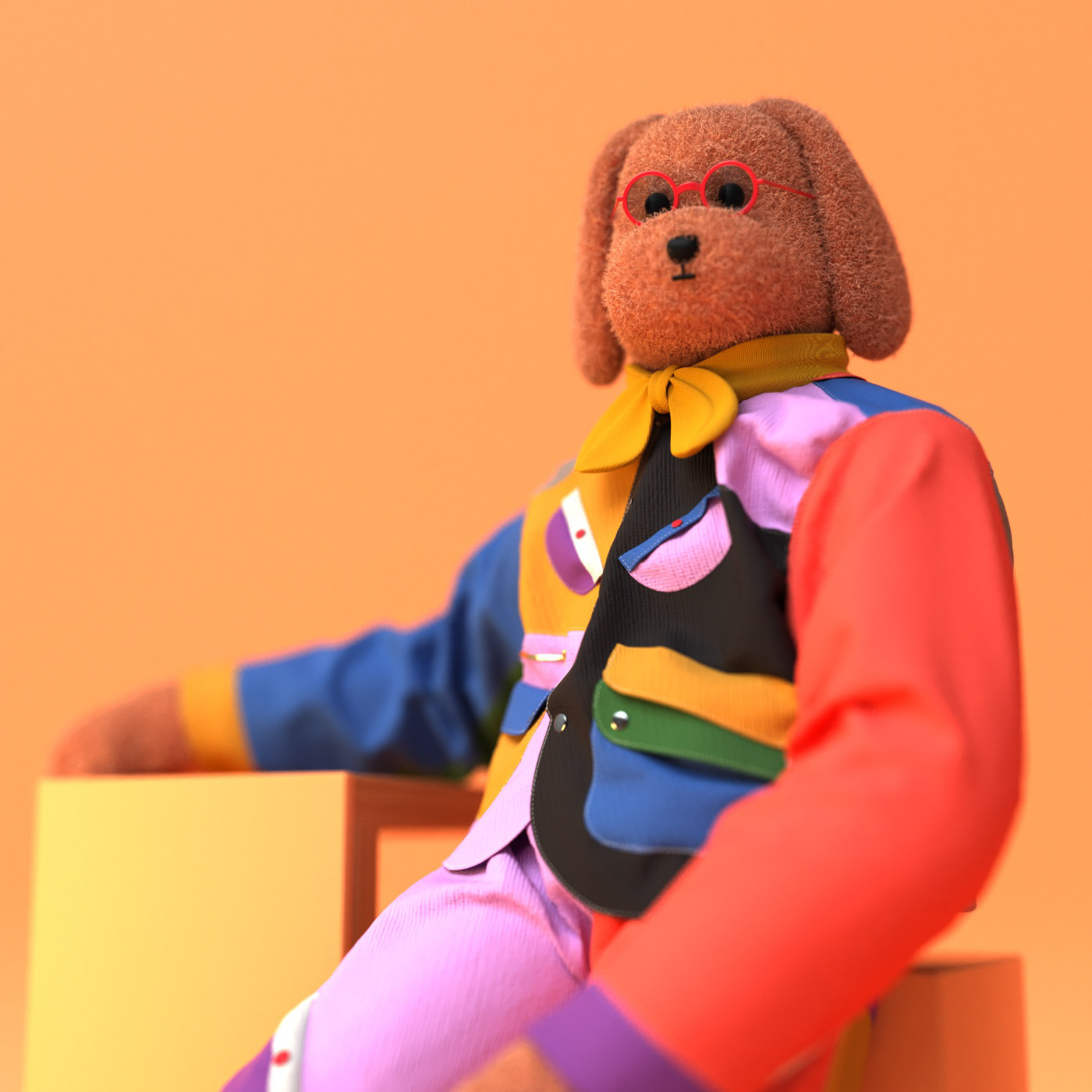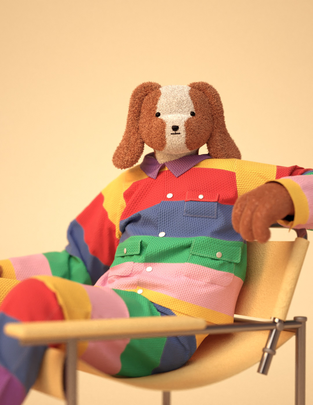 Although the images are of dogs in colourful outfits and fantastical worlds, their poses and expressions are solemn and typical of a fashion photoshoot. This disconnect makes the series playful and accessable, while still taking the clothing seriously and keeping the design and craft as the main focus.