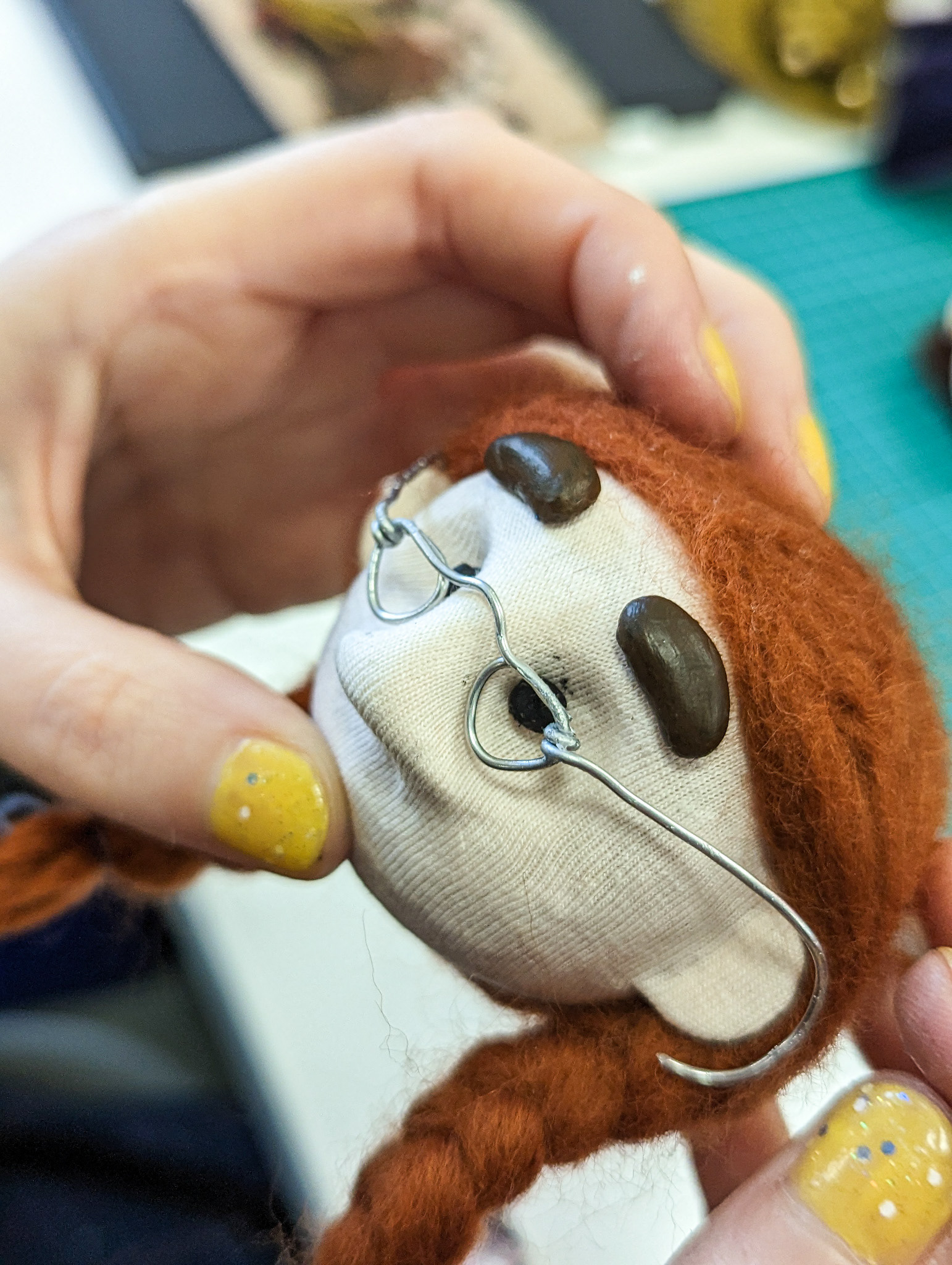 The visual style of the puppets was initially dictated by their heads; these parts of the body would not be affected by moving motors so they were the first parts of the puppets to be created. Carved in wood then covered with soft fabric and needle-felted hair, we wanted the puppets to feel soft and hide completely their robotic mechanisms.