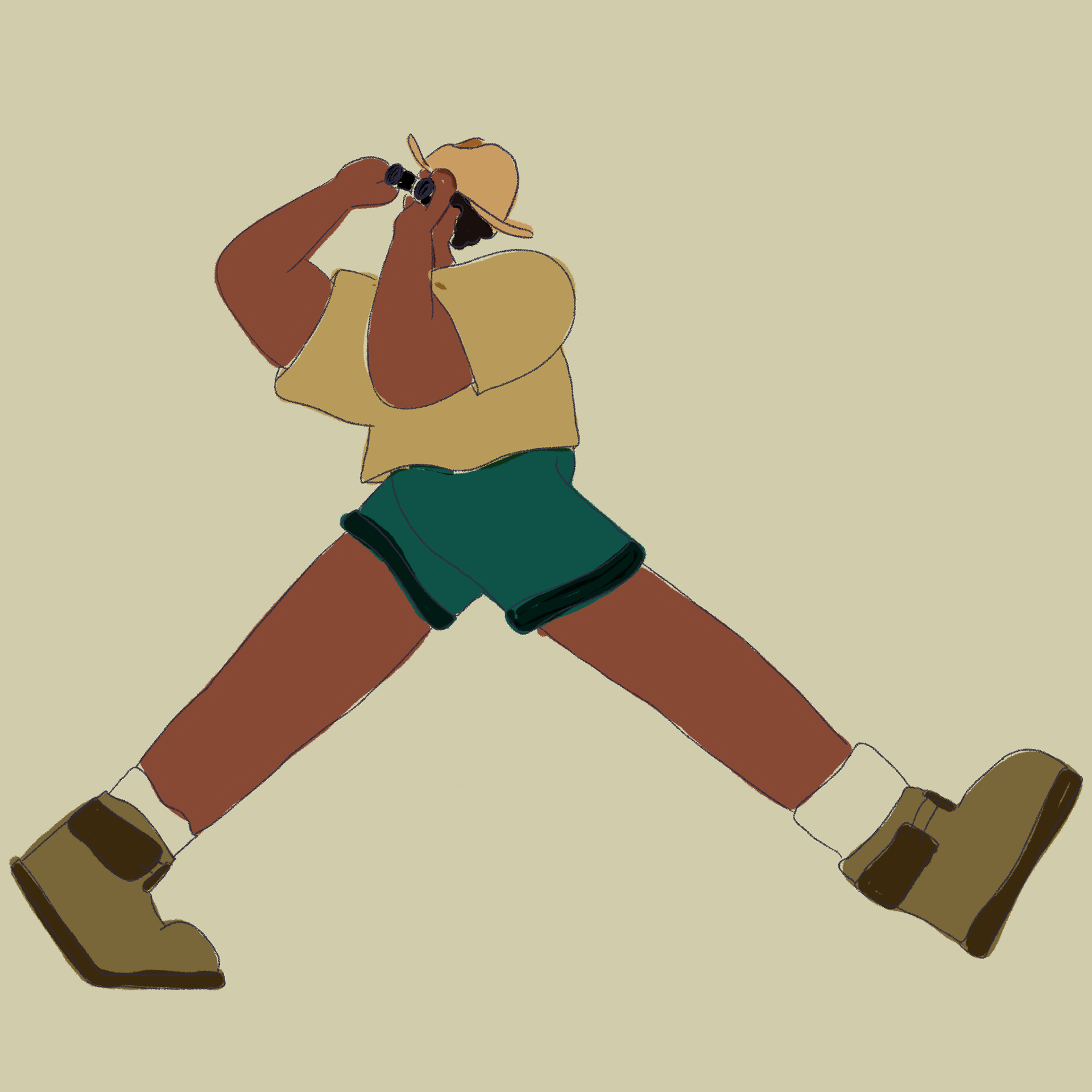 Perhaps the most adventurous of our characters is the Big Sur theme scene. We wanted to express the enormity of the Redwood trees and the intrigue and mystique felt by walking among them. We only see the base of these giants, while knowing that our character is looking up at them with her binoculars.